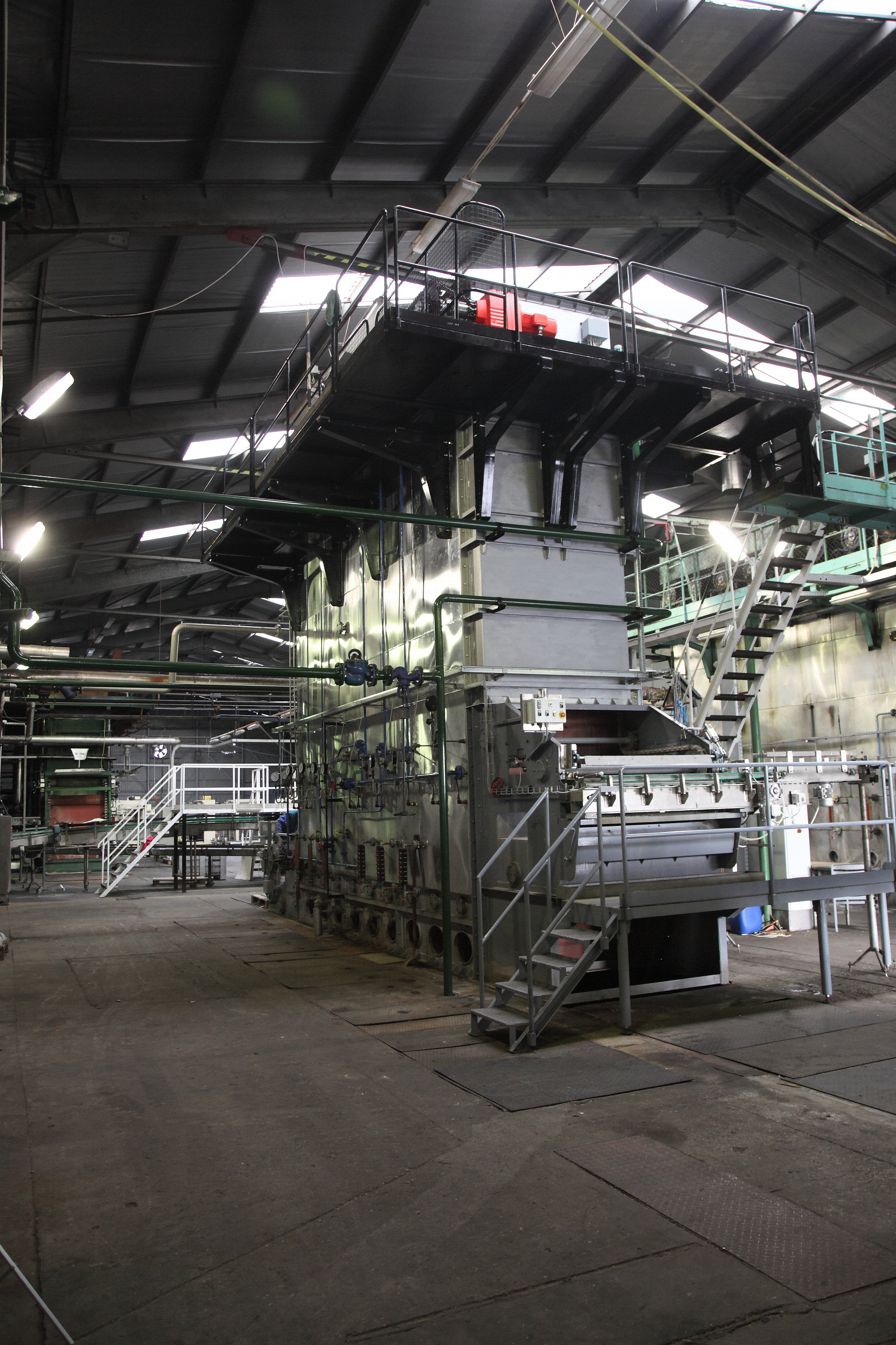 There are 5 processing lines for the actual work, so a given product may always be put on the one best suited for the purpose. Sweet corn is canned with vacuuming, while green peas are put in cans by traditional machines, not applying vacuuming. Heat treatment, the basic operation of preservation in the canning industry, is carried out on four OHS (Split Hydrostatic Sterilization) equipment, providing continuous and gentle heat treatment, while maintaining the intrinsic value of the raw material. The heat-treated canned goods are placed on a pallet by a palletizing machine, and are stored on pallets without any labels.