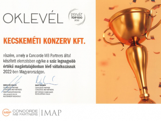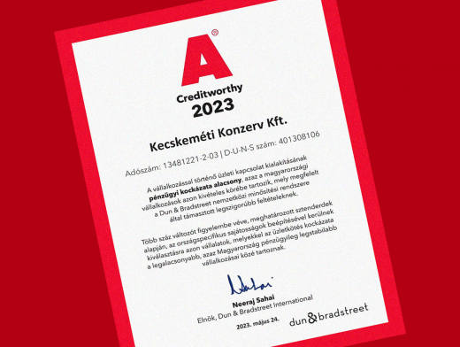 A Dun & Bradstreet International amerikai üzleti adatbázis-szolgáltató cég felmérése alapján a Kecskeméti Konzerv Kft. Magyarország pénzügyileg legstabilabb vállalkozásai közé tartozik.